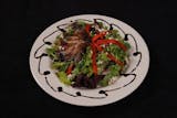 Spring mix, grilled portobello, red roasted peppers, pine nuts, and gorgonzola cheese served with balsamic dressing.